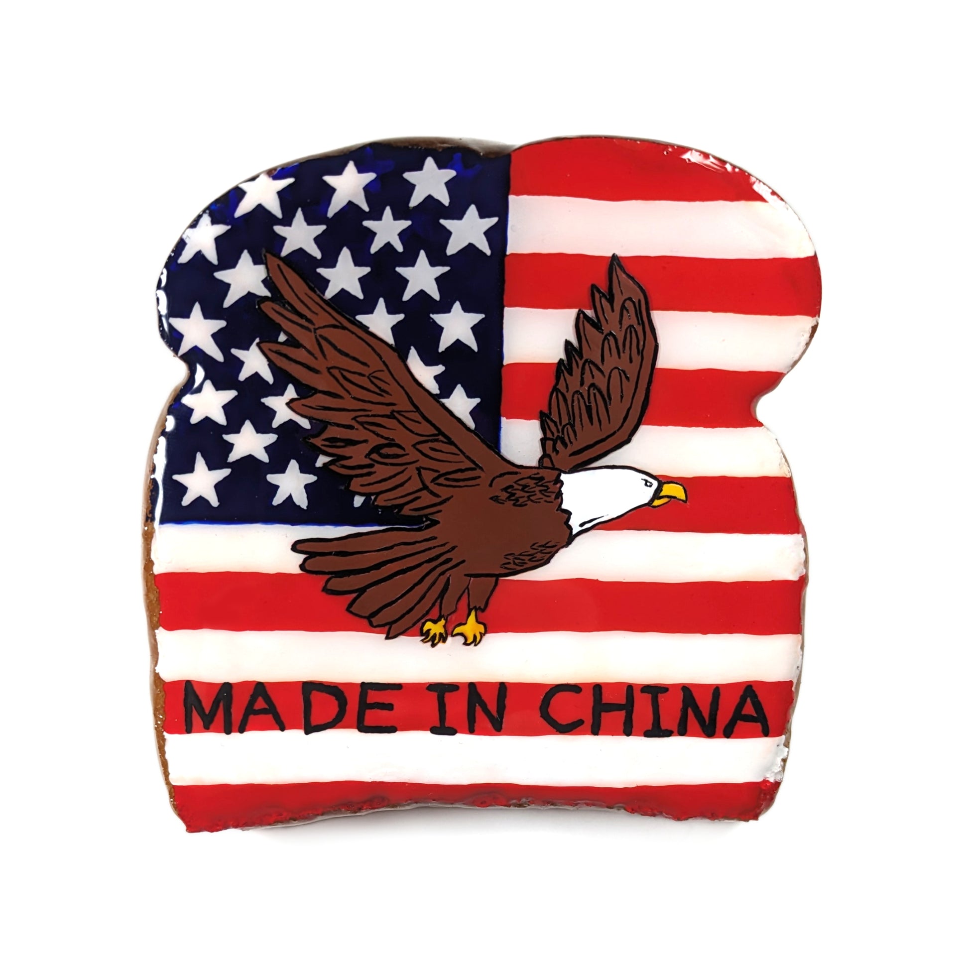 100% real bread that has been fully dehydrated before being soaked and coated in epoxy resin to prevent mold. All breads have a sawtooth hanger on the back for easy hanging!
