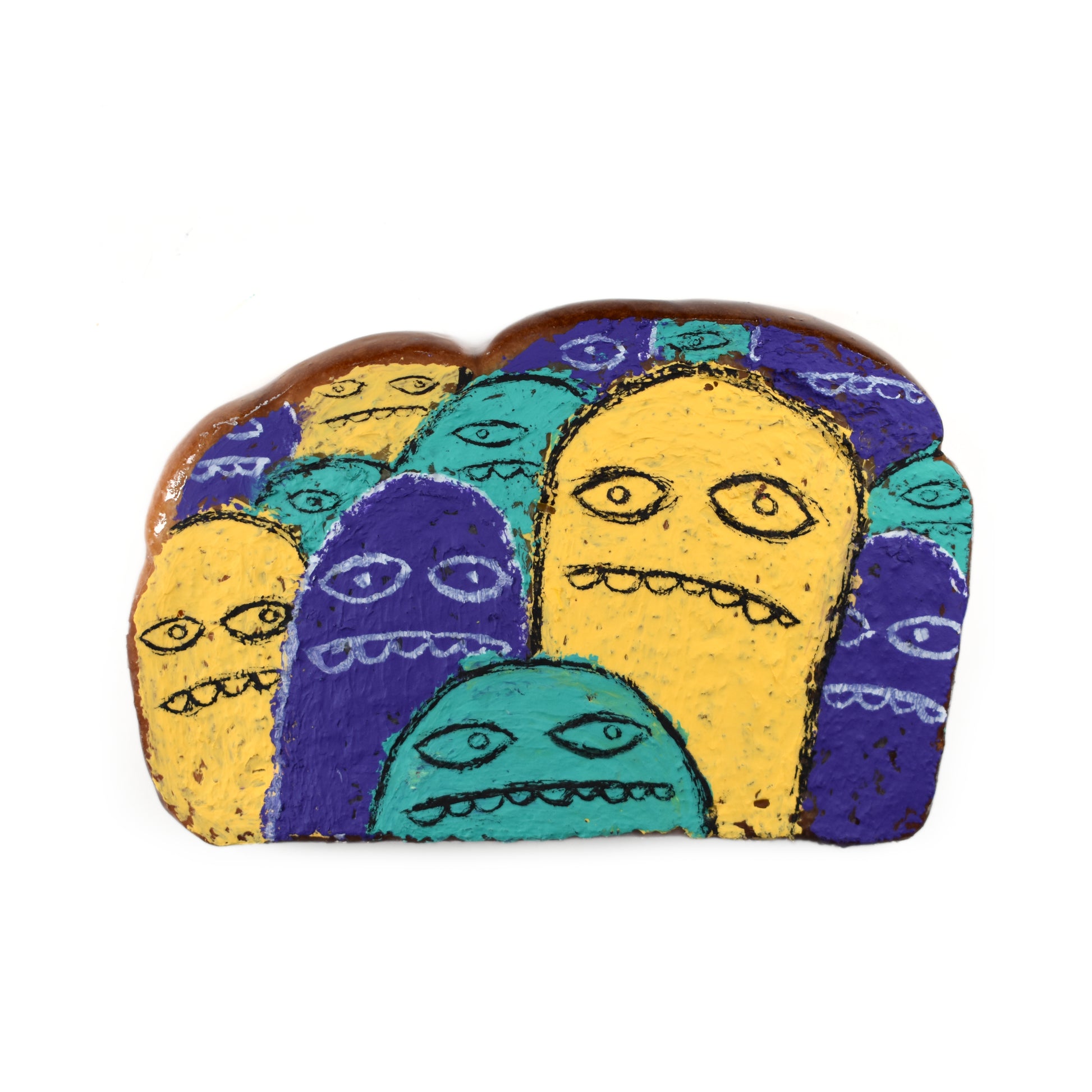 Real bread that has been fully dehydrated before being soaked and coated in epoxy resin to prevent mold. All breads come with a numbered bread tag, block printed title card, and have a sawtooth hanger on the back for easy hanging!